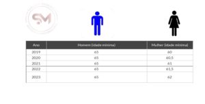 Independentemente da sua categoria de segurado,conhecer todas as implicações do regime de aposentadoria por idade é um aspecto decisivo para garantir a situação mais favorável a cada trabalhador.Isso contribui bastante para a sua segurança no momento de se aposentar, especialmente na escolha da modalidade, ponderar se vale a pena aposentar ou esperar mais algum tempo.Na aposentadoria por idade urbana, as regras de transição da idade da mulher vêm sendo a plicadas desde 2019. Por exemplo, para a mulher que já estava filiada ao sistema, ao requisito de idade será acrescido de 6 meses a cada ano, até atingir 62 anos. A tabela da idade mínima é de 65 anos para homens.
